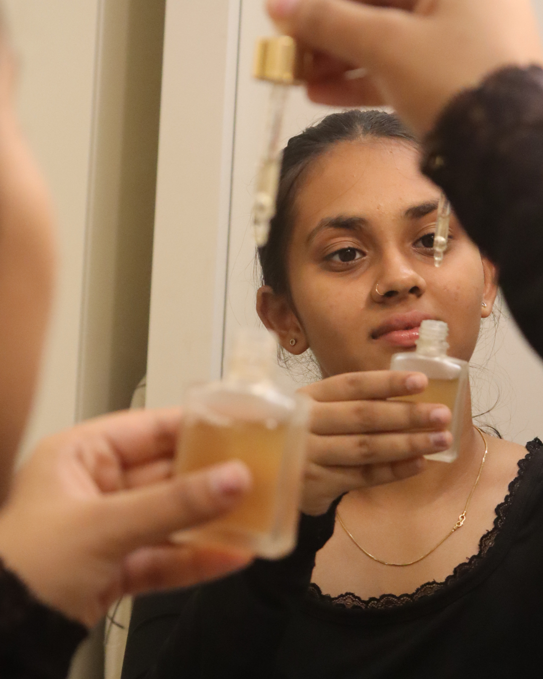 True beauty is not applied — it is awakened. Rooted in the timeless wisdom of Ayurveda, our rituals honour the skin’s prakriti — its natural constitution — and bring it into balance through the healing power of herbs, oils, and earth-born elements. Each drop is infused with sattva — the purity of intention and ingredient — and nourishes your skin with the inner light of tejas, the subtle glow that reflects health, harmony, and vitality. Free from toxins, rich in heritage, and grounded in nature’s rhythms, our skincare line is a sacred blend of tradition and modern self-care. Let your skin breathe, blossom, and glow — with beauty that is soulful, serene, and unmistakably you.