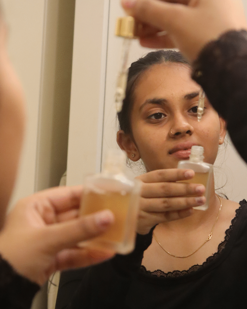 True beauty is not applied — it is awakened. Rooted in the timeless wisdom of Ayurveda, our rituals honour the skin’s prakriti — its natural constitution — and bring it into balance through the healing power of herbs, oils, and earth-born elements. Each drop is infused with sattva — the purity of intention and ingredient — and nourishes your skin with the inner light of tejas, the subtle glow that reflects health, harmony, and vitality. Free from toxins, rich in heritage, and grounded in nature’s rhythms, our skincare line is a sacred blend of tradition and modern self-care. Let your skin breathe, blossom, and glow — with beauty that is soulful, serene, and unmistakably you.